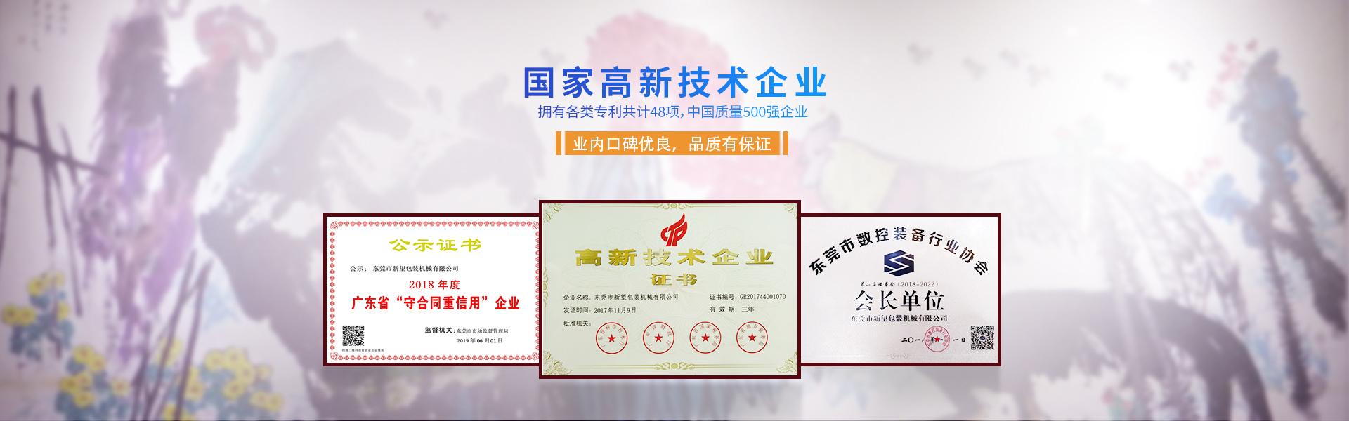 新望機械成立于1998年,位于東莞市東部工業(yè)園區(qū)的中心地帶——企石鎮(zhèn)東平村,交通方便、環(huán)境優(yōu)美舒適、視野開闊。公司注冊資本2000萬元,擁有辦公室、廠房等18,000多平方米。已通過ISO9001:2015國際質量管理體系認證,擁有國家各類專利共計58項。是東莞市企石鎮(zhèn)工商聯副會長單位、東莞市企石鎮(zhèn)文學藝術界聯合會副主席單位、東莞市環(huán)保包裝行業(yè)協(xié)會副會長單位、東莞市數控裝備行業(yè)協(xié)會第二屆會長單位、廣東省包裝技術協(xié)會常務理事單位、廣東省膠粘劑行業(yè)協(xié)會理事單位、廣東省著名商標企業(yè)、國家高新技術企業(yè)。